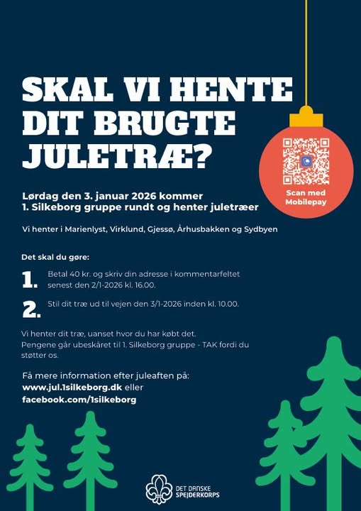 Følg med på gruppens offentlige FB side : 1. Silkeborg, Det Danske Spejderkorps | Silkeborg | Facebook og Juletræsindsamling - 1. Silkeborg | Facebook